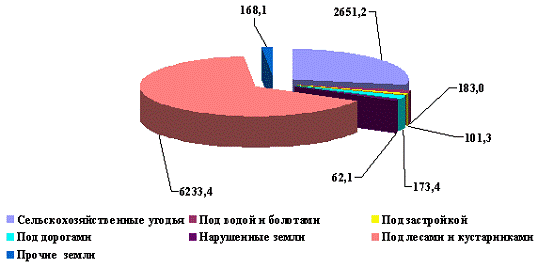 земельная площадь за 2010-2012 год в среднем составила 10000 га, в том числе