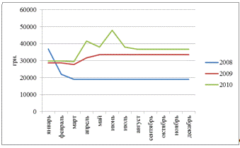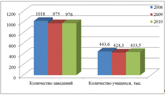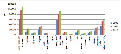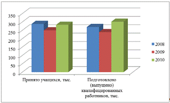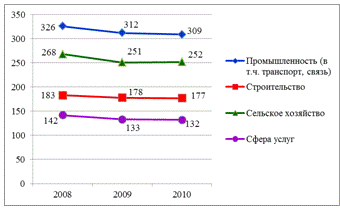 контингента учащихся в 2008-2010 годах по отраслям рассмотрим на рисунке 4.