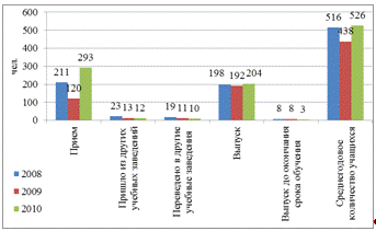 4- Динамика контингента учащихся в 2008-2010 г. по отраслям