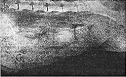 рис. 14а. Рентгеновский снимок суки с гнойными выделениями из влагалища и