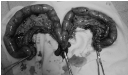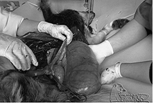 рис. 26. Перекрут матки у суки с большим сроком беременности,
