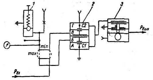 получает дискретные пневматические сигналы 0 и 1 при входе параметра за пределы