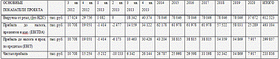 Таблица. Основные финансовые показатели проекта