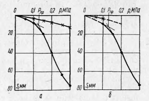 давление определяется по построенным кривым зависимости осадки от нагрузки для