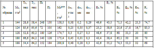 структурные характеристики, поверхностная плотность, коэффициент драпируемости