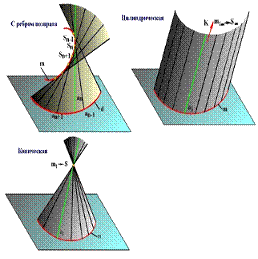 поверхностей, имеющих ребро возврата: торсы, конические и цилиндрические (см.