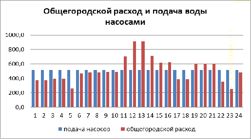 График водопотребления и подачи воды насосами