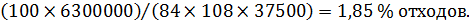 материала и после, и отходы до обрезки (1,85 %) достаточно низки, а процент
