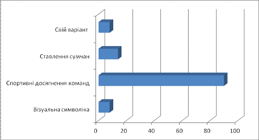 більшість опитуваних обрало спортивні досягнення команд (90%) (рис. 3.7). І це