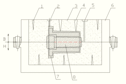 - стержневой ящик; 5 - вкладыши; 6 - формовочная смесь;