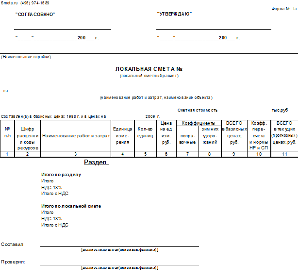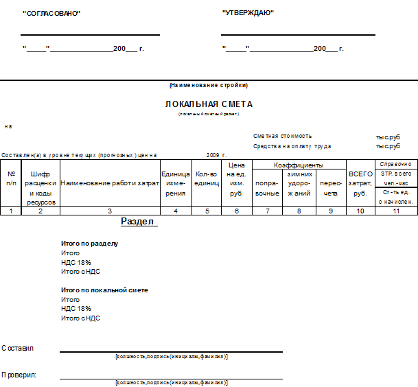локального ресурсного сметного расчета (сметы), руб. или тыс. руб.;