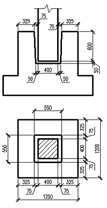 600x400мм. Подколонник 1200x900мм.