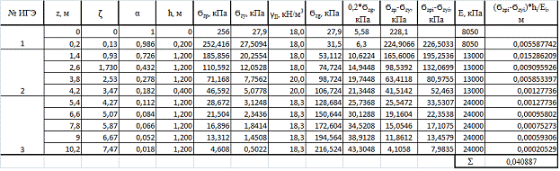 образом установлено, что в пределах трех слоев максимальная осадка