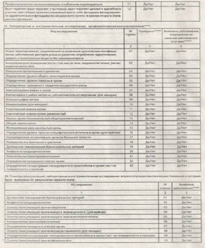 прохождения отдельных исследований в проводимой диспансеризации по форме и в