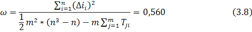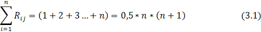 имеются свойства с одинаковыми рангами, вычисляют сумму связанных рангов в j-м ранжировании (по горизонтали):
