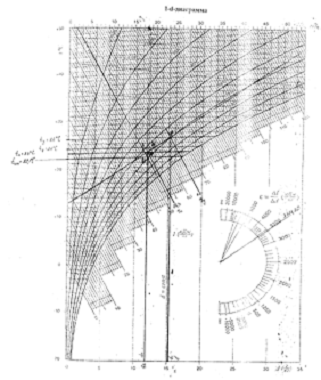 определяем путем построения процесса изменения параметров воздуха на I-d