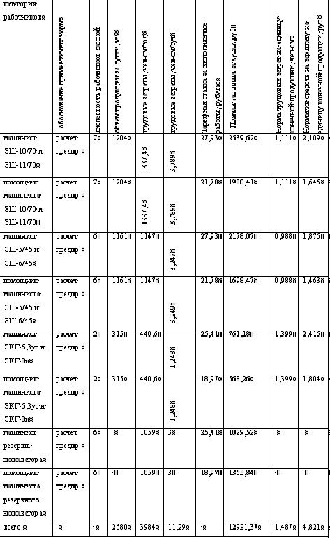 формирования подрядного коллектива на примере рабочих, занятых на экскавации