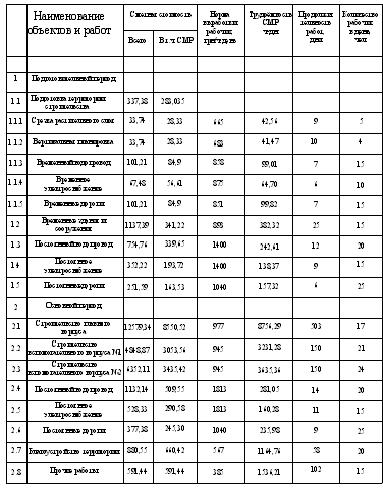 - общая продолжительность строительства,