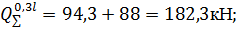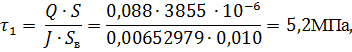 поперечной силы. В середине пролета Q = 88кН, среднее напряжение определяется