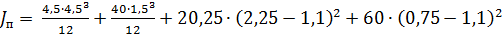 соответственно моменты инерции рельса и полки относительно своих центров