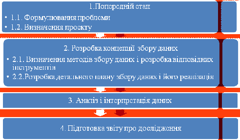 опитування, експеримент тощо; 7) отримання і обробка даних; 8) аналіз отриманих