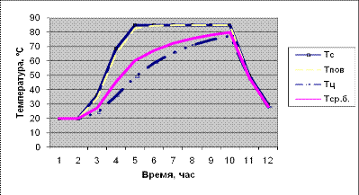 произведен расчет температур изделия на протяжении всего процесса тепловой