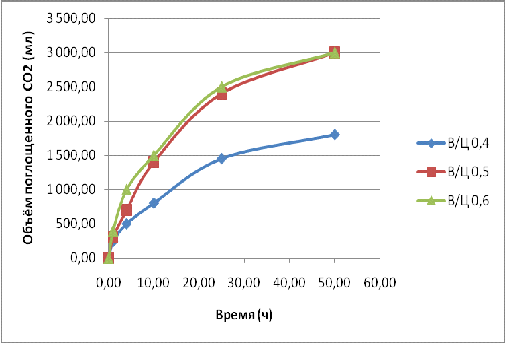 активность углекислого газа с цементно-песчаным раствором: чем больше В/Ц, тем