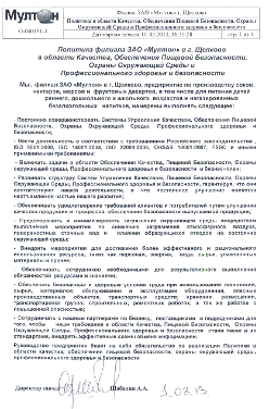 . Политика ЗАО «Мултон» в области