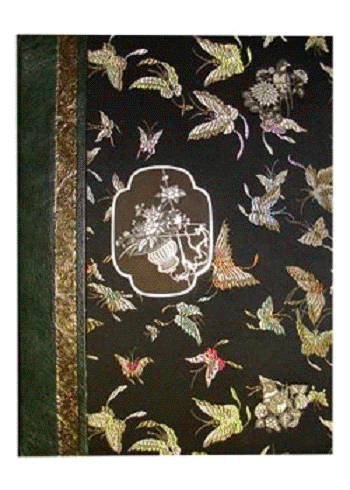 (Италия); парча шелковая (Китай); форзац раздельный на кожаной слизуре; каптал