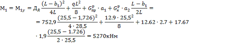 Скручивающий момент для опорного узла приводной пролетной балки: