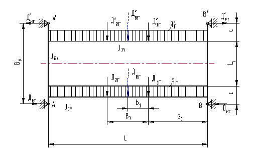 Рисунок 6.9 Схема эксцентричного приложения нагрузок на пролетную балку