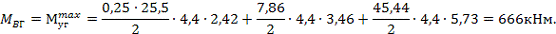 балкой - производим для случая действия нагрузок комбинации I.2.Б. Расчетную
