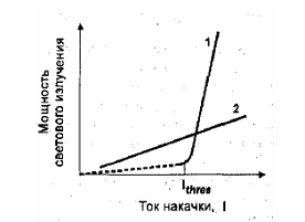 описывается ватт-амперной характеристикой диода (рисунок). Где 1 - лазерный