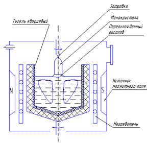 Чохральского. Тигель с раствором имеет высоту 12 см и диаметр 12 см. Скорость