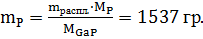 Зная молярные молекулярные (атомные) массы (MGa = 69.72 г/моль, MP = 30.97 г/моль, MGaP = 100.69 г/моль), легко найти сколько нужно галлия и фосфора