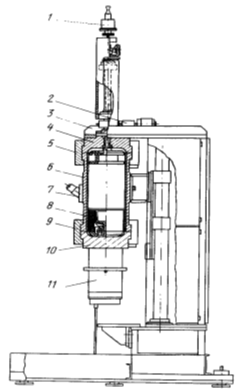 смотровое окно; 8 - тепловой узел; 11 - кожух привода подъема и вращения штока