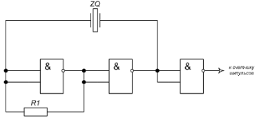 тактовые импульсы с частотой f = 100000 кГц. Генератор собран на двух