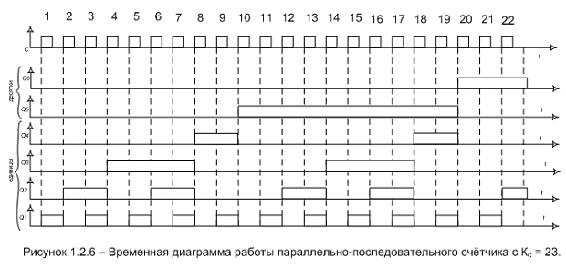 параллельно-последовательного счётчика импульсов на JK - триггерах и коэффициентом счёта равным 23, делителя частоты