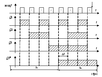 (вызывающих переключения) триггеров и столбец номера входного импульса.