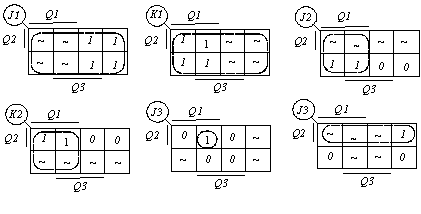 последующих состояний триггеров, столбцы определения функций возбуждения