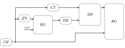 С выхода генератора импульсы напряжения поступают на вход параллельно-последовательного