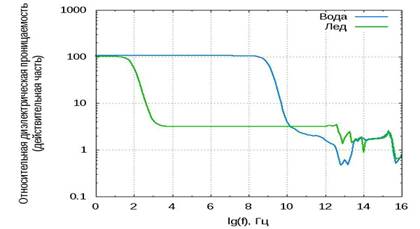 диэлектрической проницаемости воды и льда от частоты электромагнитных волн