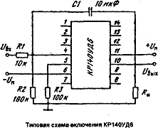 Назначение выводов: КР140УД6: 1, 2, 7, 8, 12, 13,