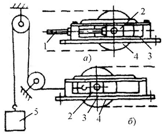витками на барабан лебедки, проходят через направляющие блоки и присоединены к