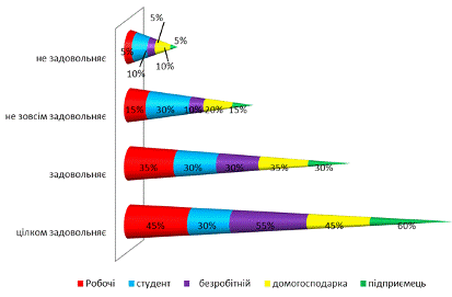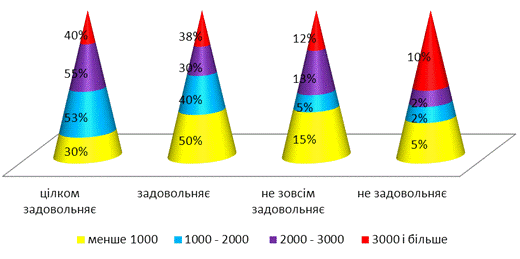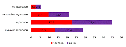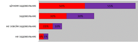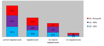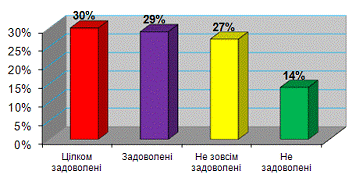 рівня обслуговування 31% респондентів задоволені, 29% - цілком задоволені, 26%