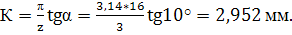 Величину затилування розраховуємо за