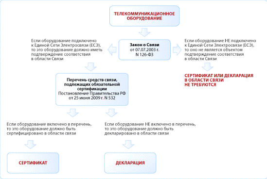 оборудования требованиям Министерства связи, то декларирование или сертификацию