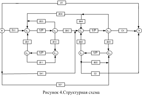 В схеме четыре элемента, запасающих энергию:L1,L2,C1,C2, следовательно, математическая модель должна быть