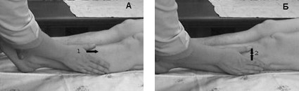 поглаживания” на задней поверхности голени. Стрелками показано направление