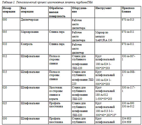 процесса изготовления лопатки турбины ТНА в проектируемом варианте